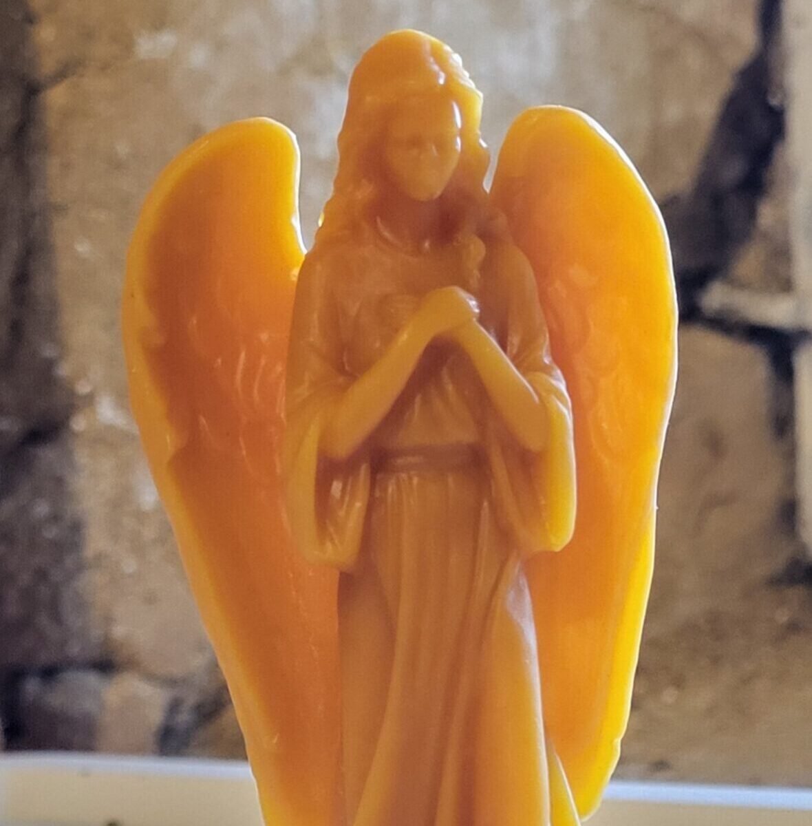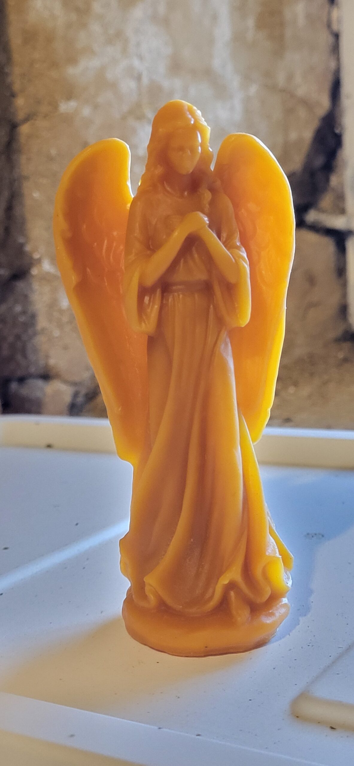 Fabriqué par l’Atelier de Marie, cet Ange en pure cire d’abeille ornera vos coins prière ou vos crèches de manière élégante et joyeuse.