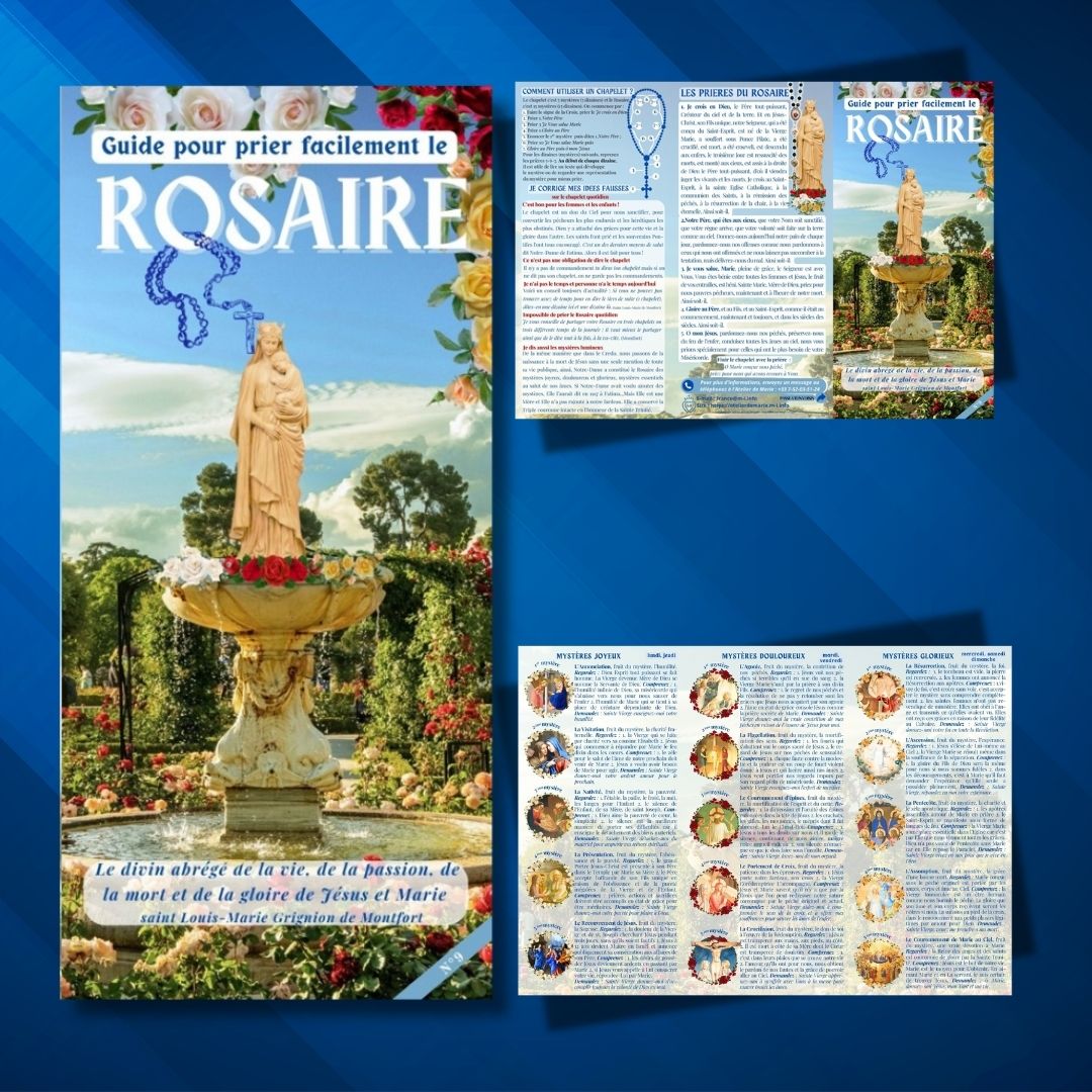 Vous cherchez un guide pour apprendre à prier le chapelet catholique ? Vous êtes récemment converti ou vétéran dans la Foi catholique et vous cherchez à obtenir les grâces du Rosaire ? Voici les prières du Rosaire écrites en gros caractères pour faciliter la lecture, avec les explications et les méditations pour chaque mystère, en format A4 plié en trois volets.
