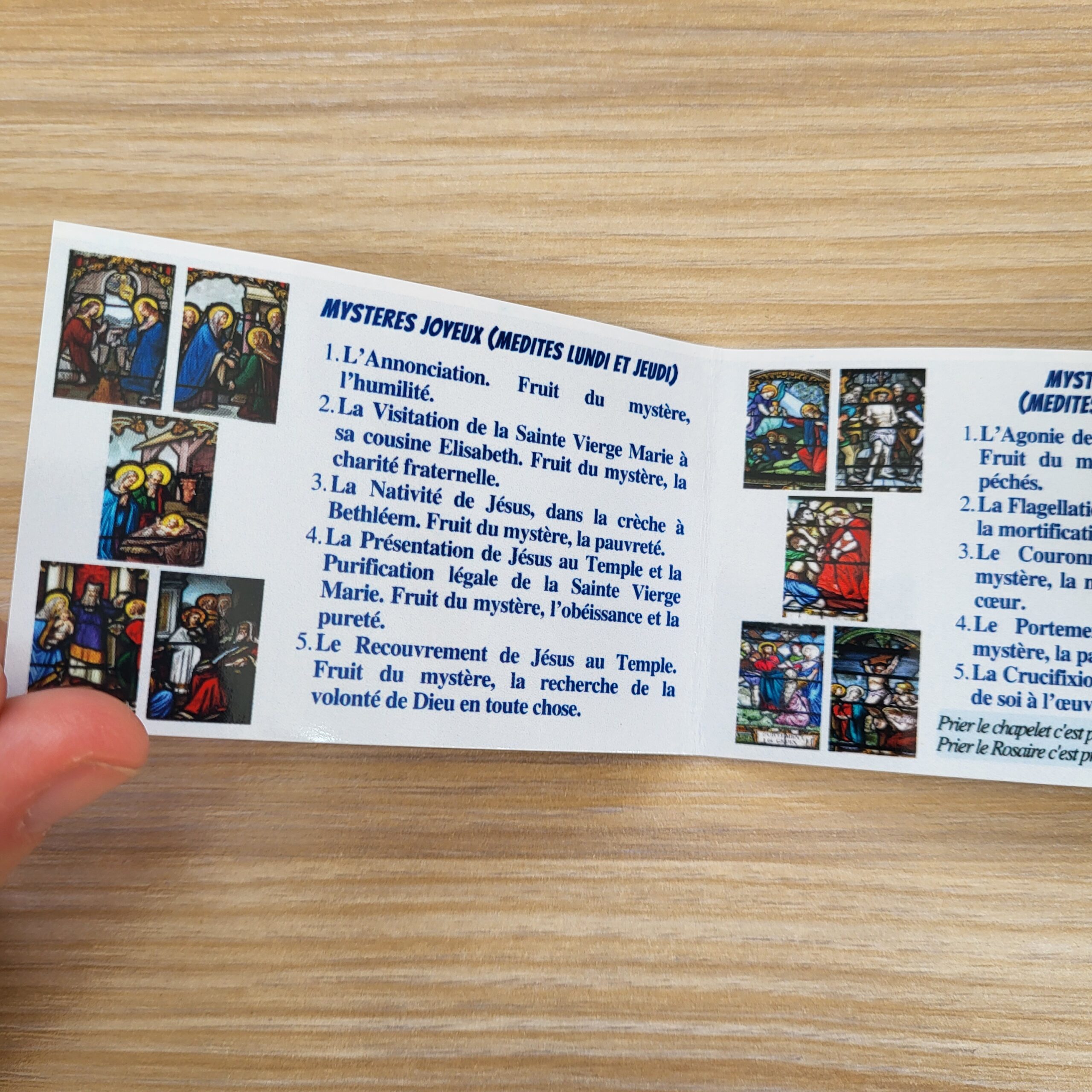 Carte de visite en carton glacé épais et brillant sur le Chapelet ou Rosaire