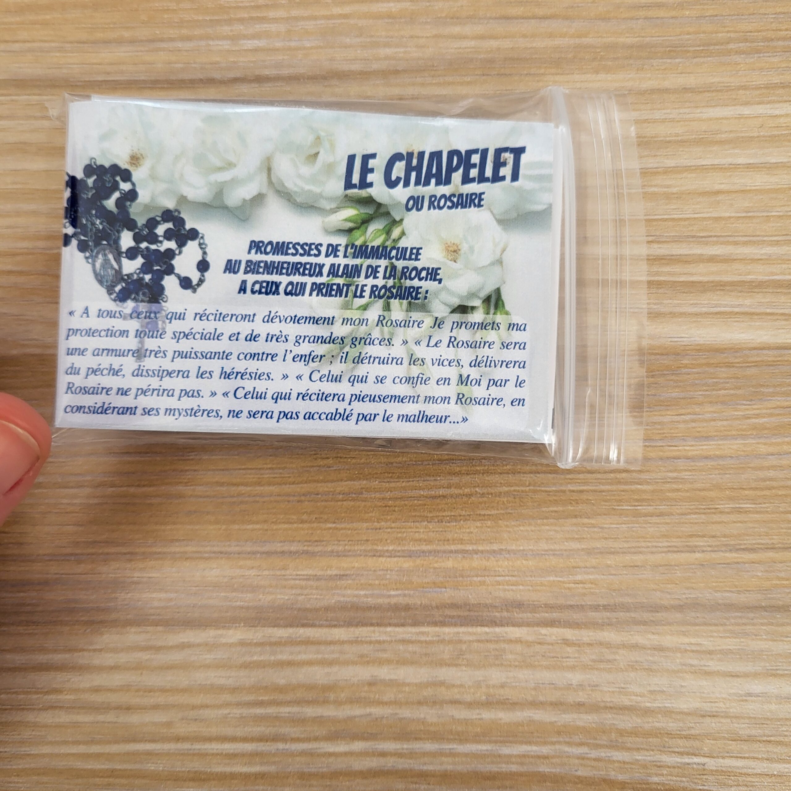 Vous ne savez pas dire à Notre-Dame la belle prière du Rosaire mais vous voulez apprendre ? Ce kit est spécialement conçu pour vous. Il contient le chapelet et la carte avec toutes les prières de base et l’énoncé des mystrères.