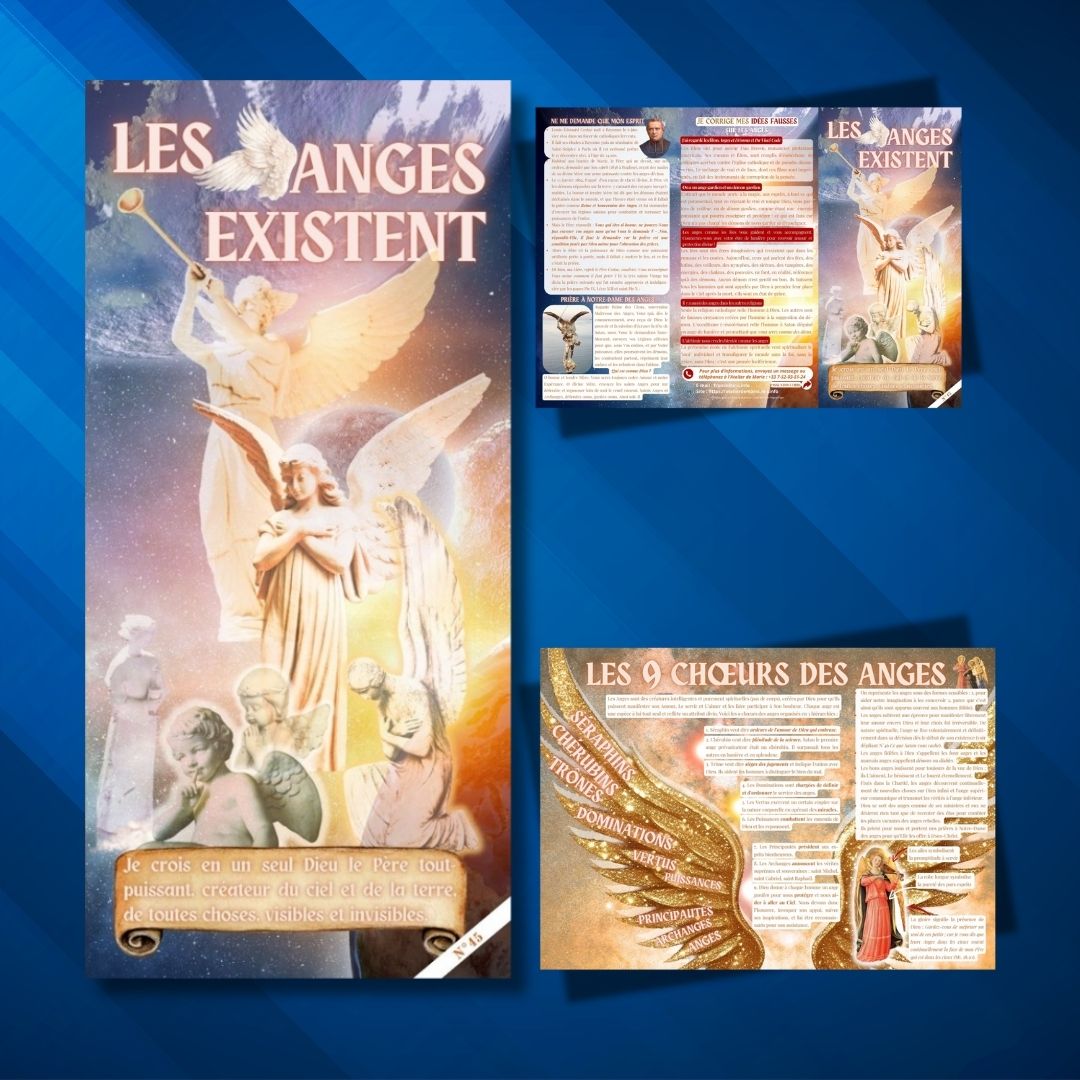 Tant de choses sont dites sur les anges ! Des choses fausses la plupart du temps. Comment savoir ce qui est erroné lorsque tout le monde consulte internet comme source de savoir infaillible alors que nous savons que cette machine est conditionnée par des hommes malintentionnés ? Procurez-vous ce dépliant pour en savoir sérieusement plus !