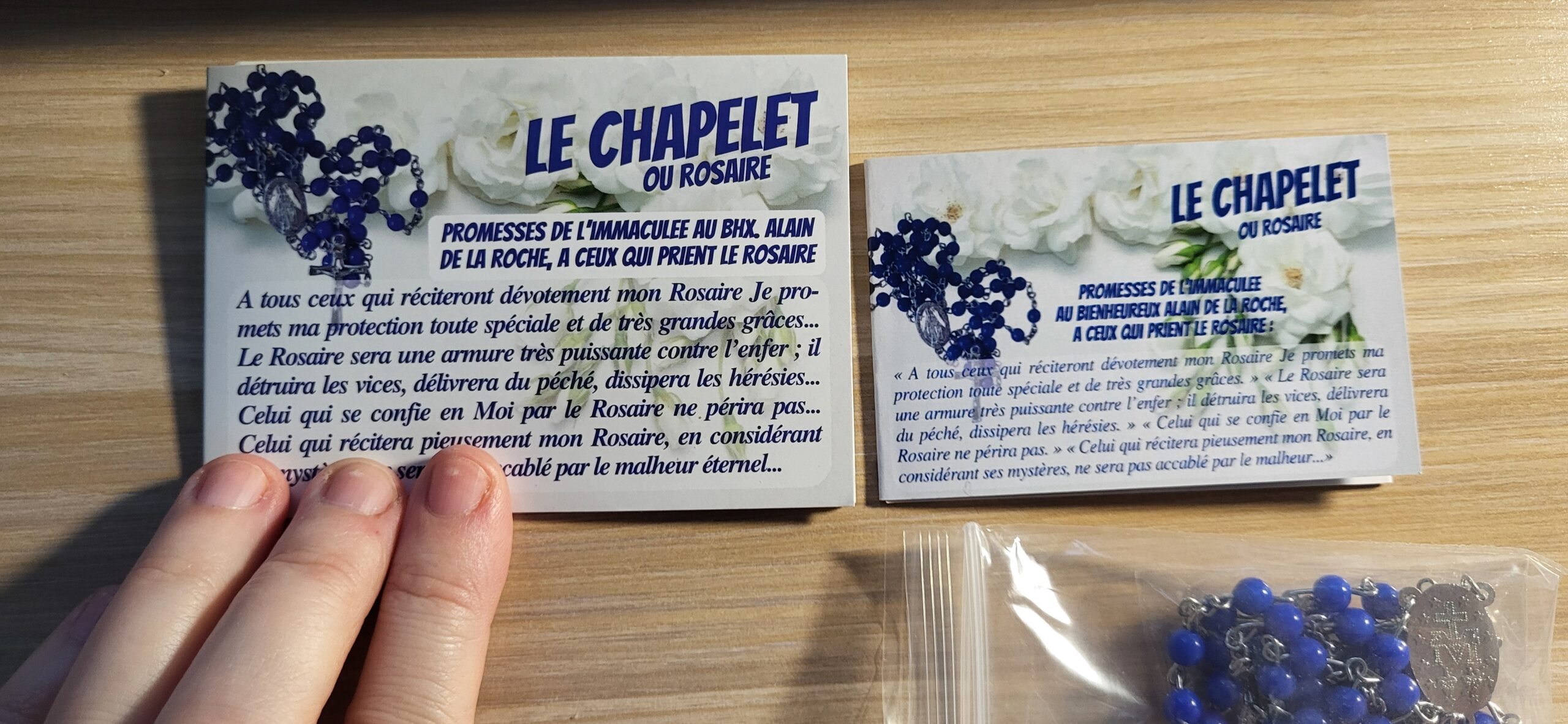 Abonnez vous au chapelet quotidien avec cette carte en carton glacé épais et brillant.