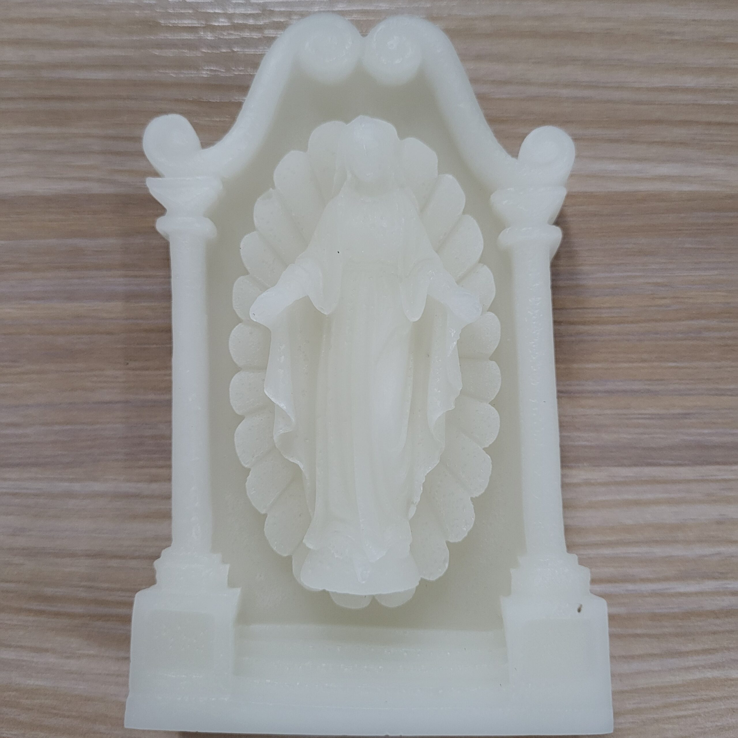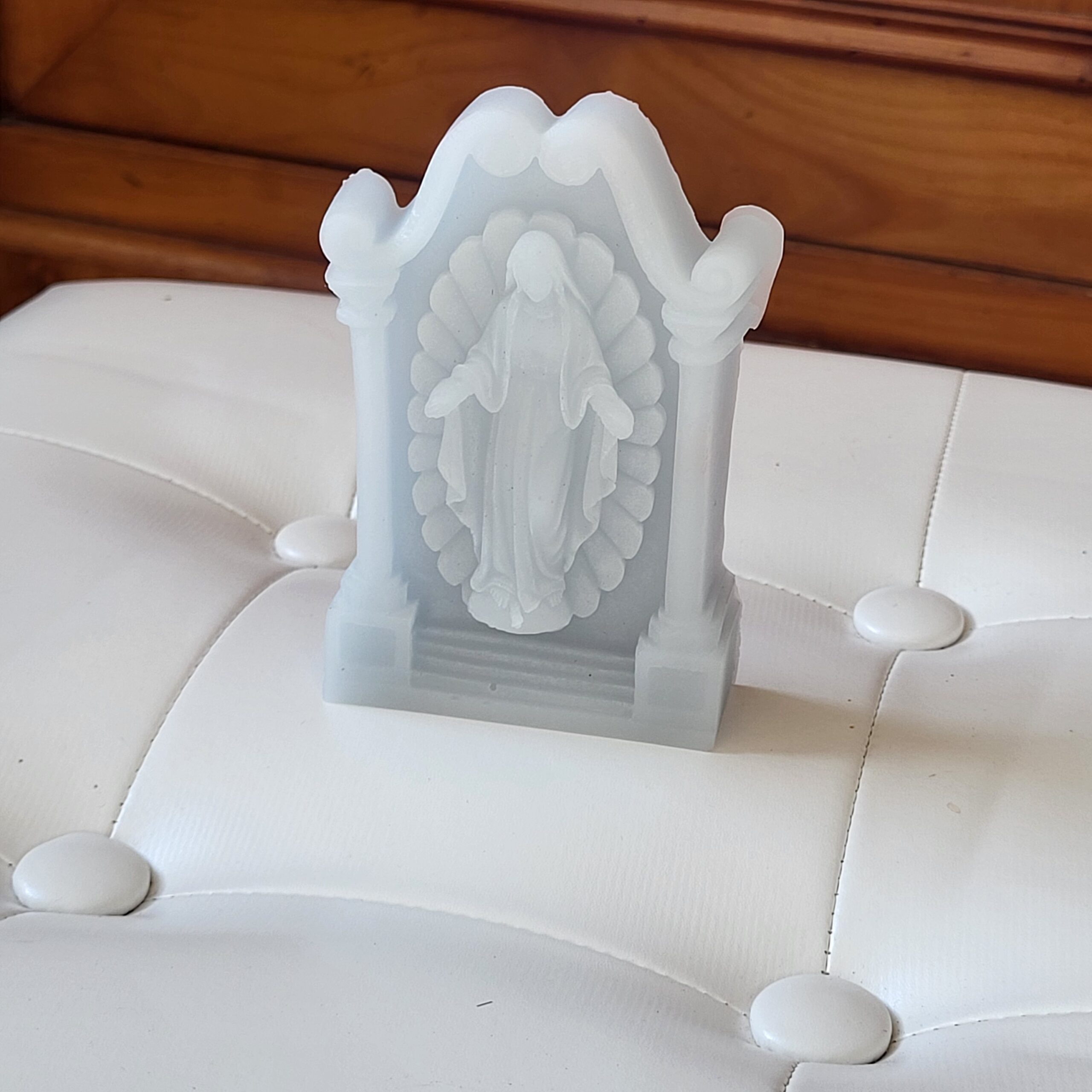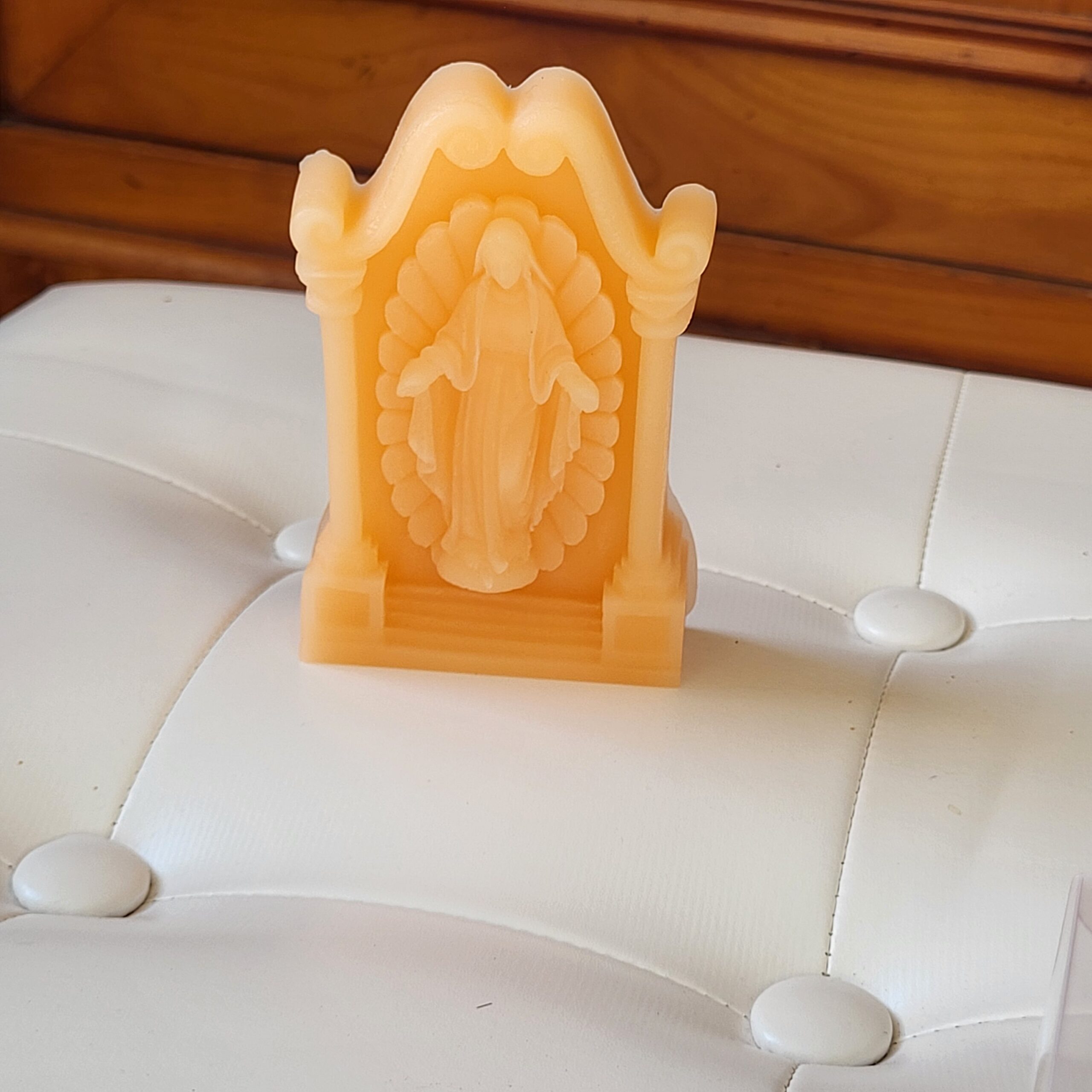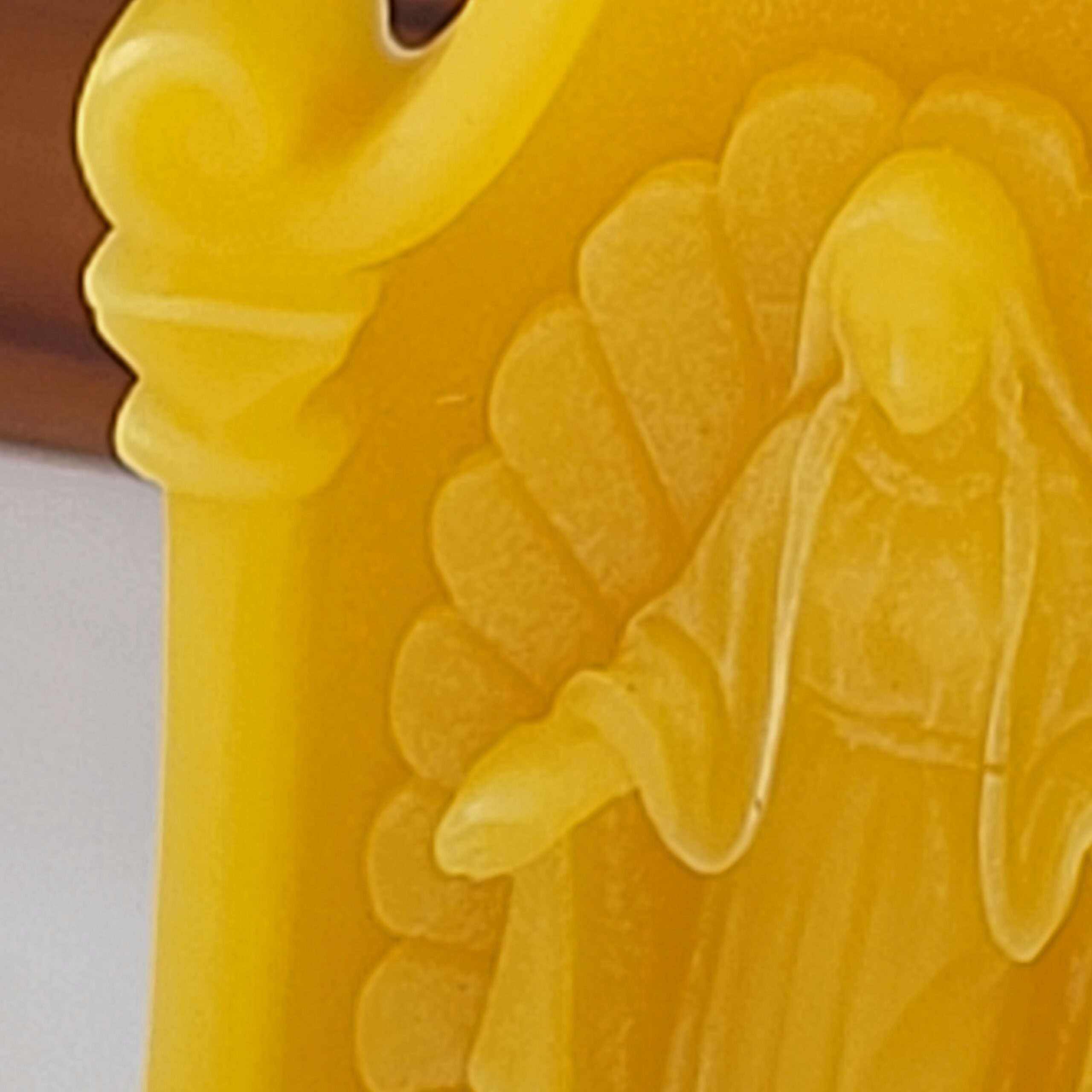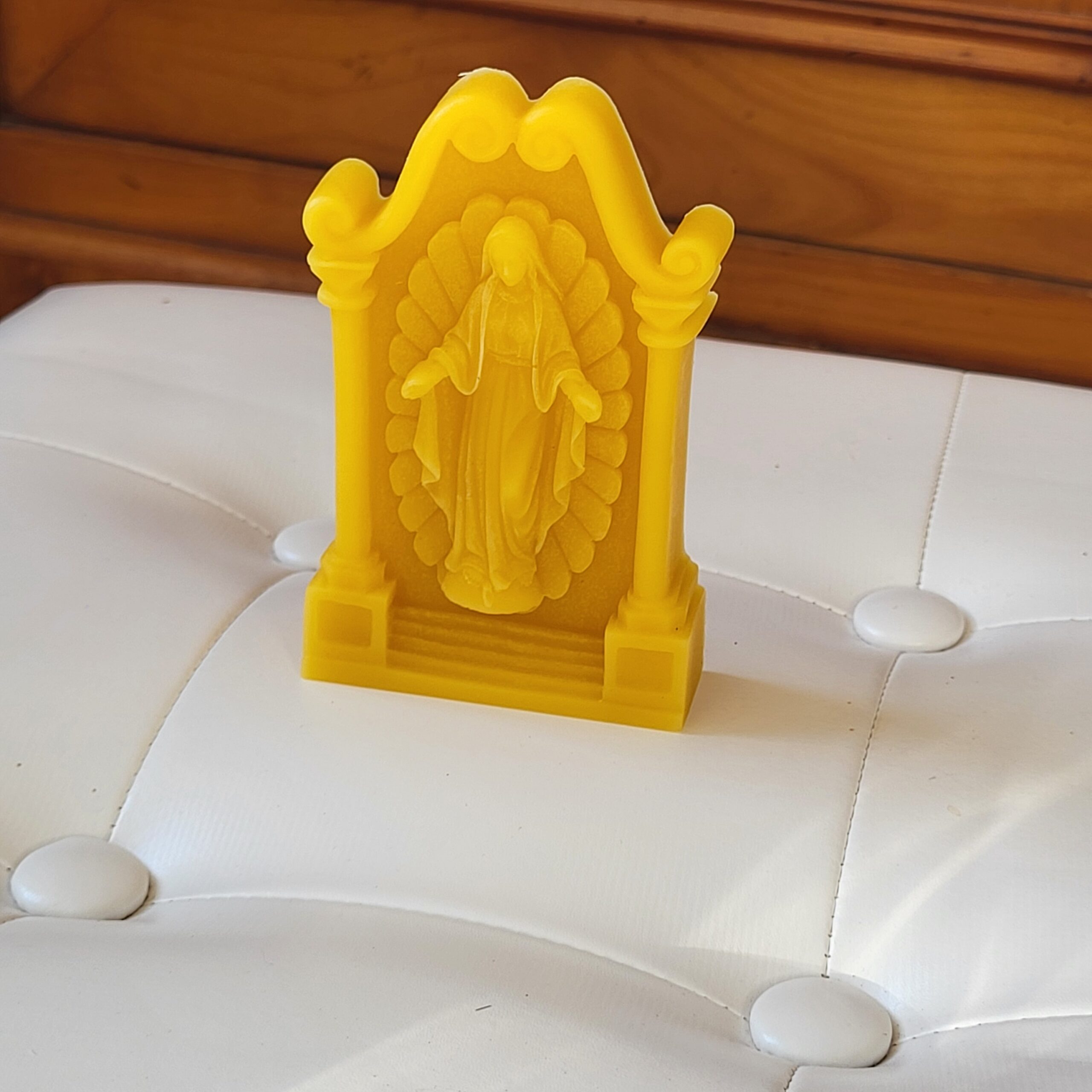 Fabriqué par l’Atelier de Marie, ce bas-relief de Marie Médiatrice de toute grâce en pure cire d’abeille ornera vos coins prière de manière élégante et joyeuse.