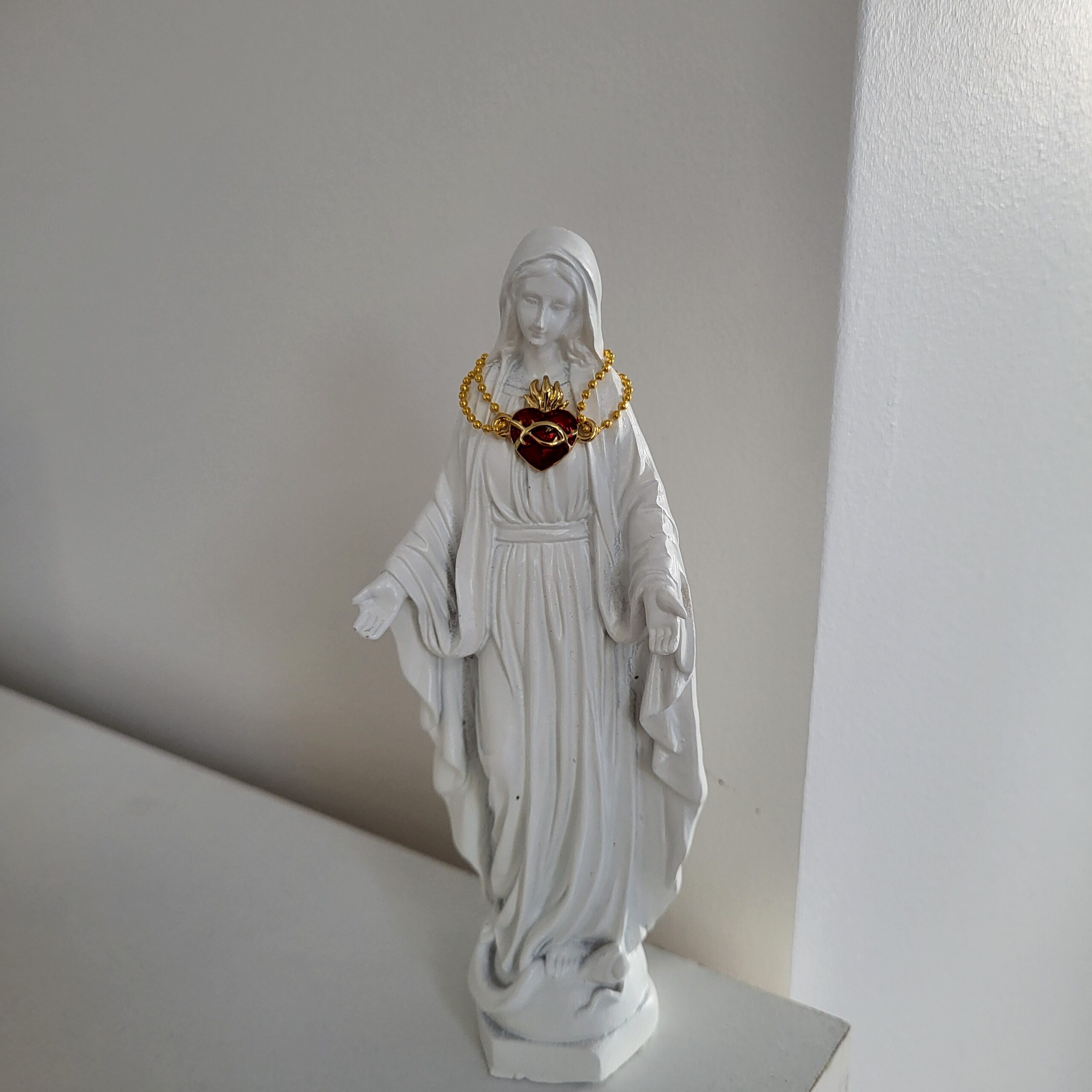 L’Atelier de Marie vous propose ces petites statuettes de Vierge Marie de la rue du Bac sauvées de la décharge et enrichies du Sacré-Cœur de Jésus pour orner votre coin prière et vous rappeler que pour aller à Jésus, rien de plus rapide et de plus sûr que de passer par Marie qui seule possède totalement le Sacré-Cœur.