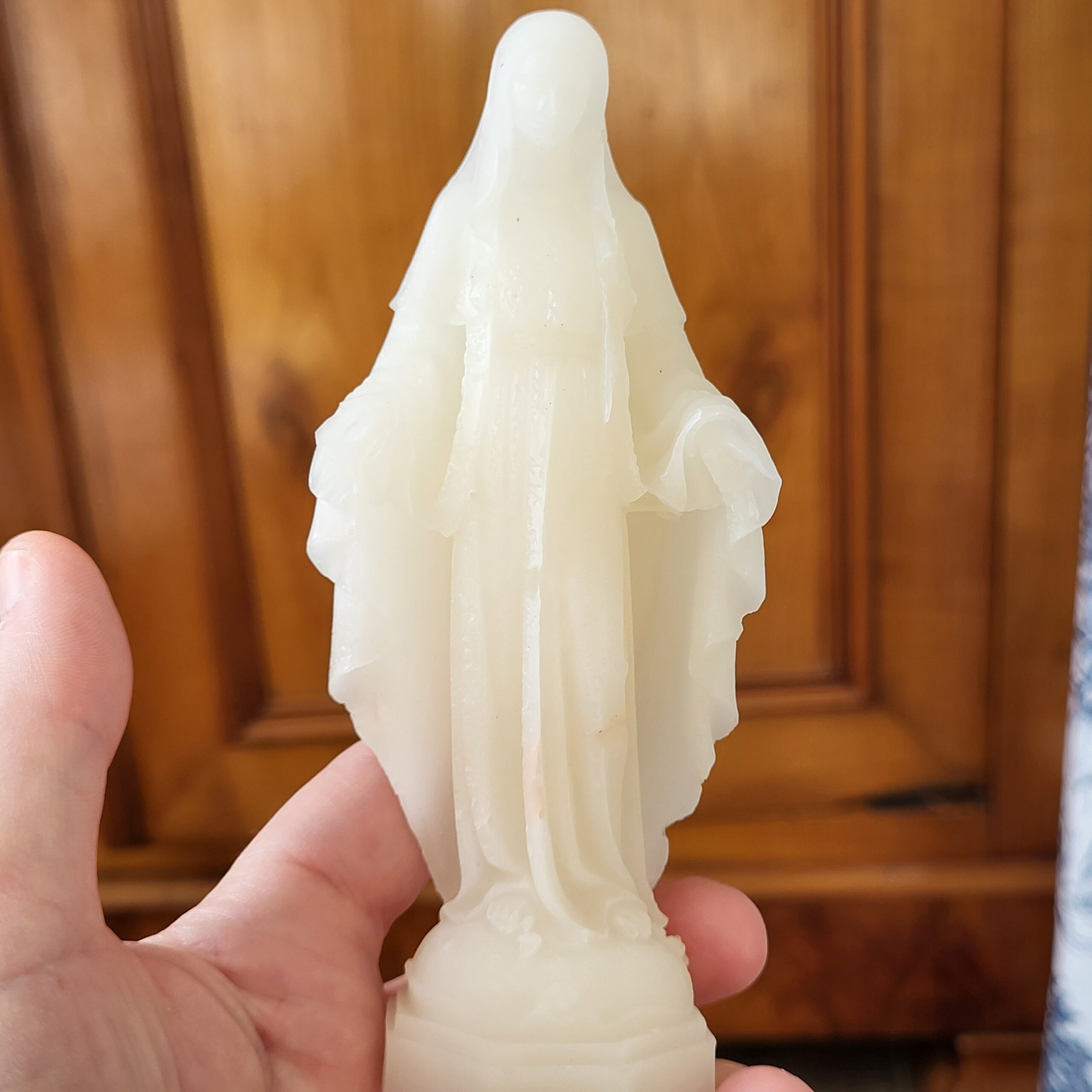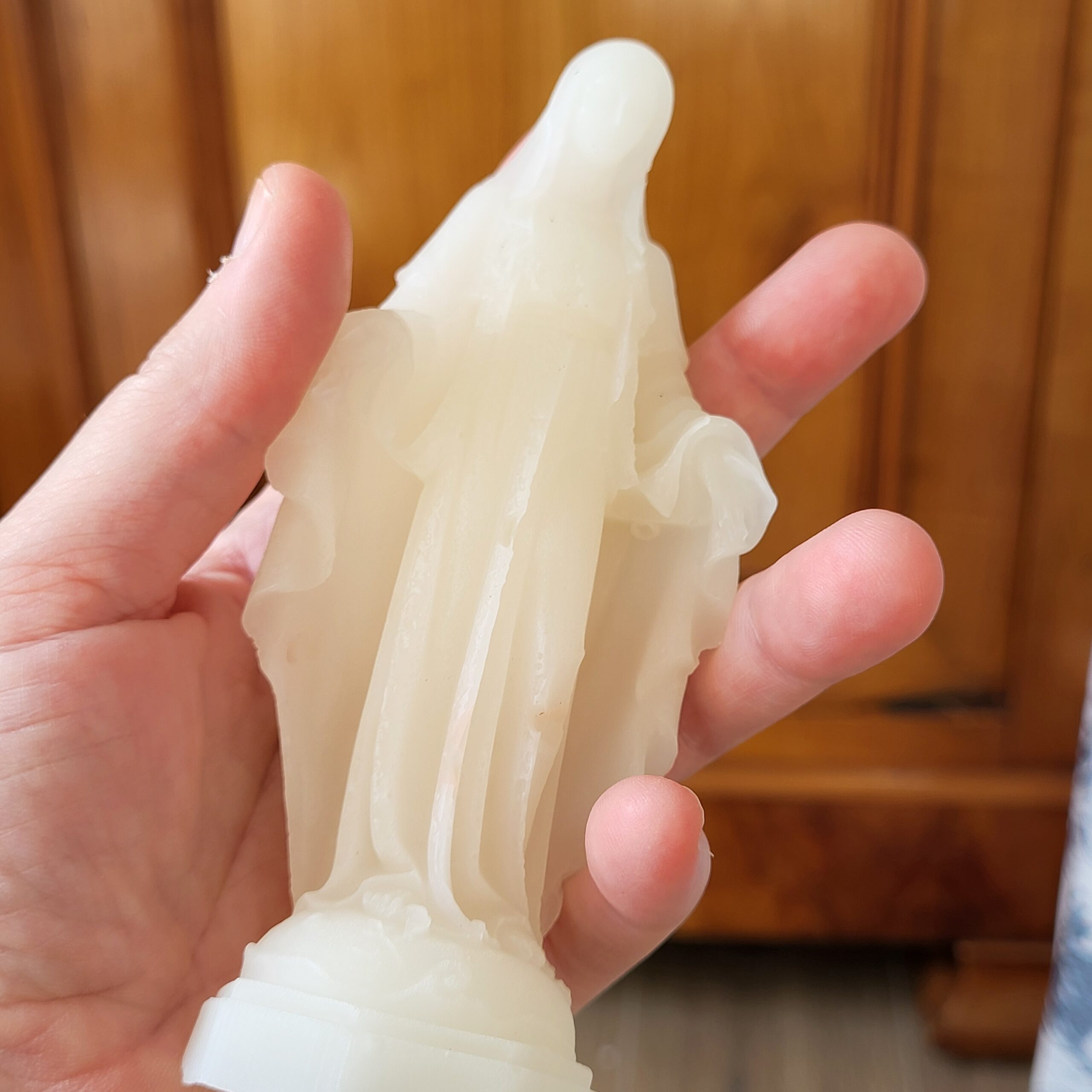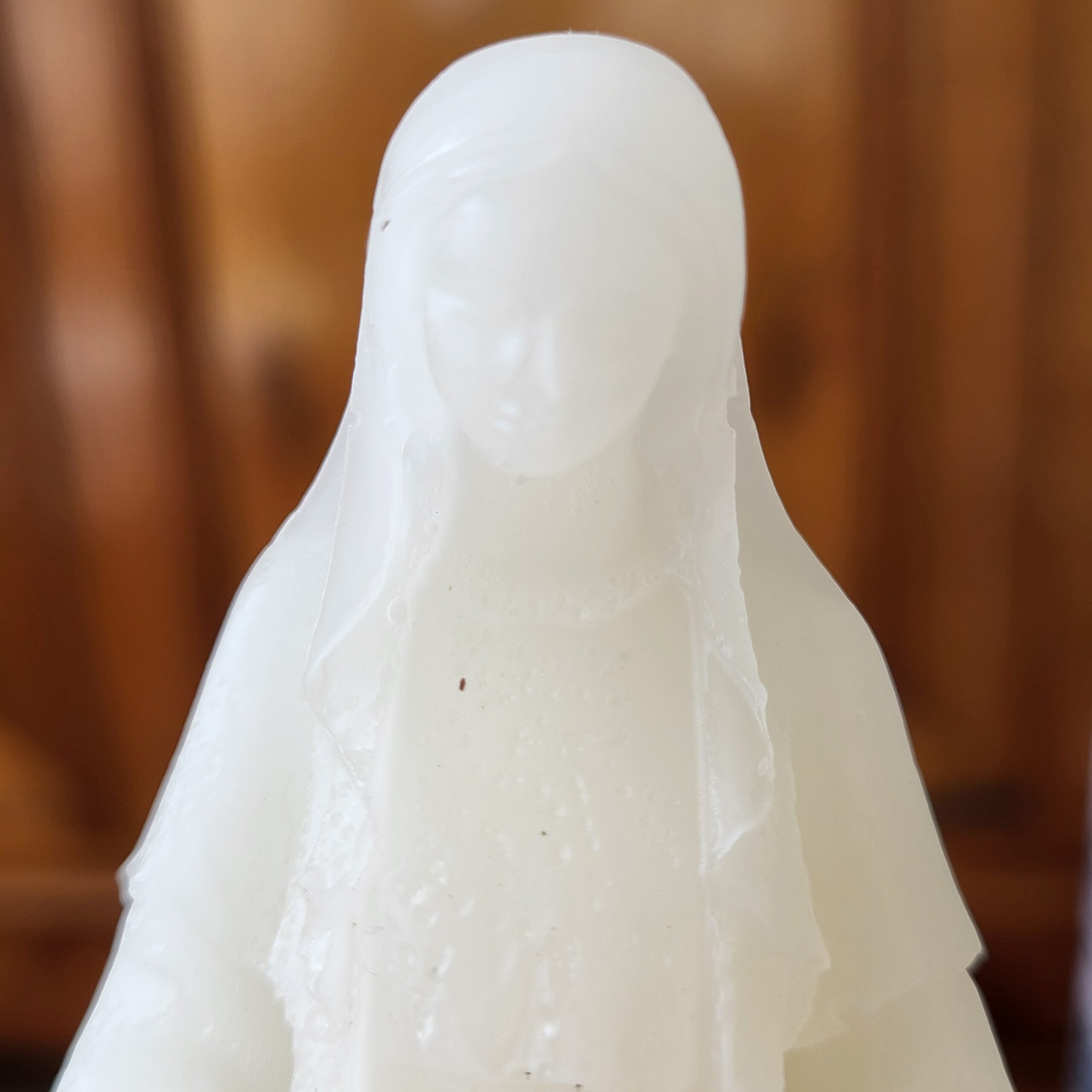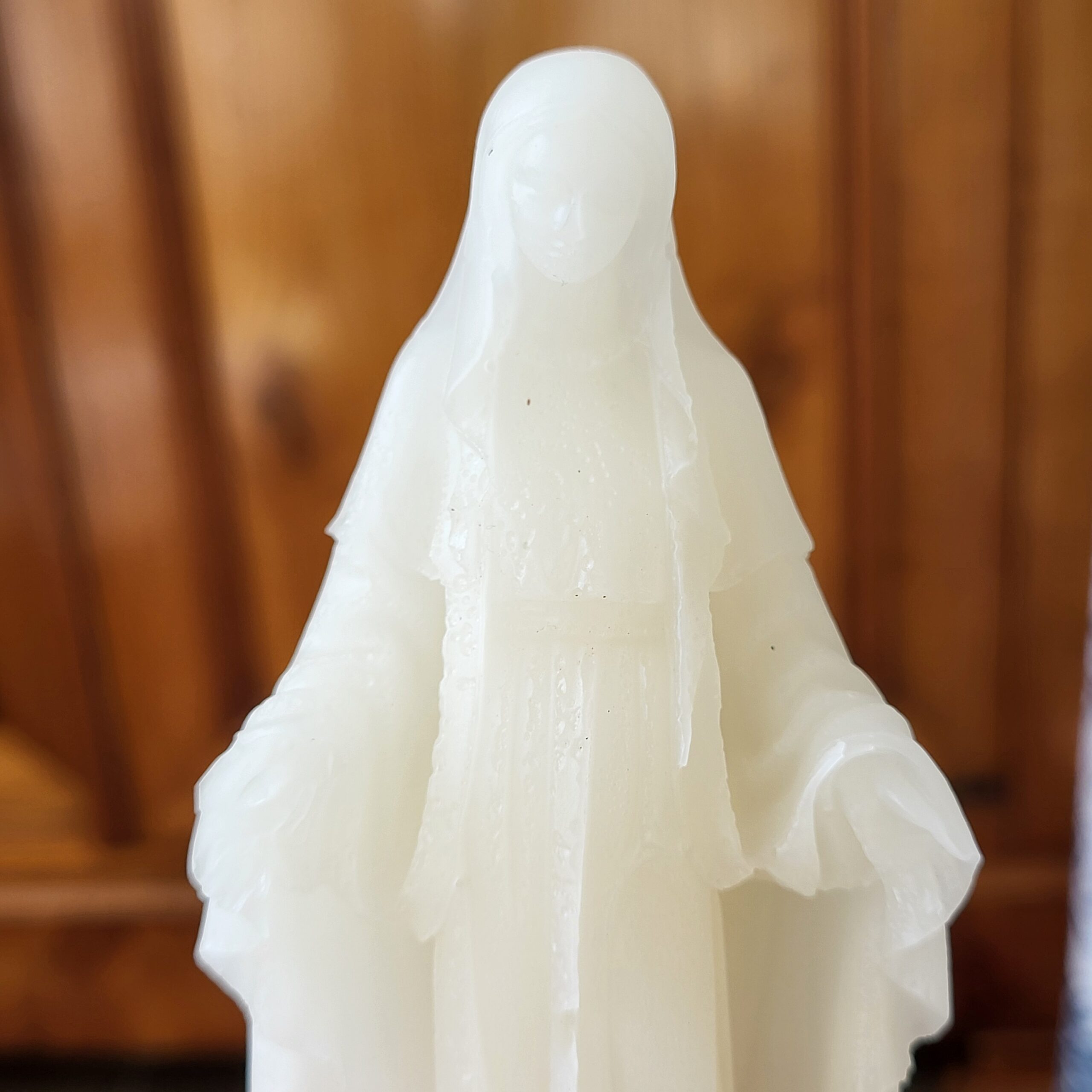Fabriquée par l’Atelier de Marie, cette statuette de la Vierge Marie de la Médaille Miraculeuse en pure cire d’abeille ornera vos coins prière de manière élégante et joyeuse.